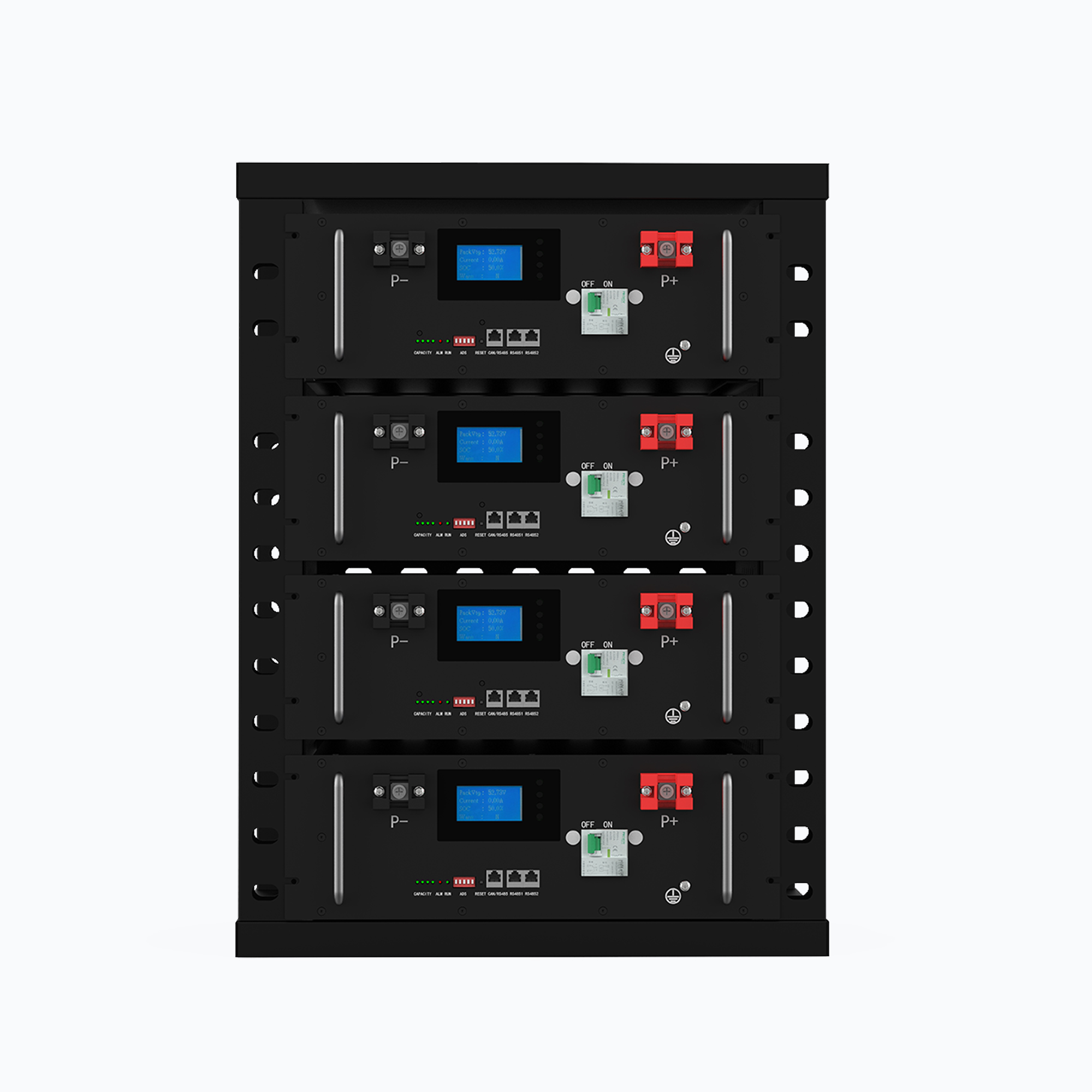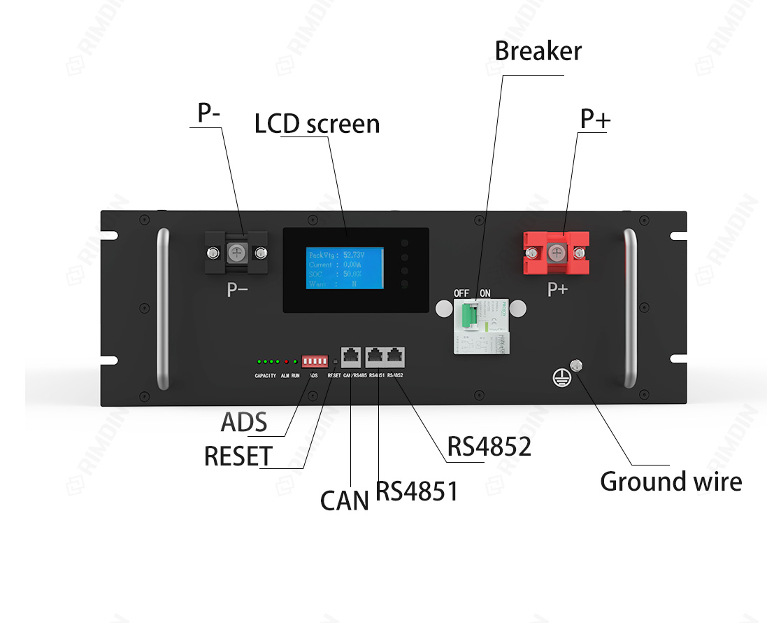 module and an intelligent BMS to form a 51.2V200Ah lithium battery system. The system supports up to 16 groups of batteries in parallel. The system is prohibited from being used in series and mixed with other batteries of different brands and model.